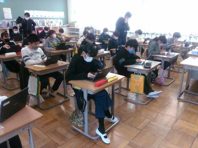2の3の教室で子供たちが丁寧に漢字の学習に取り組んでいました。